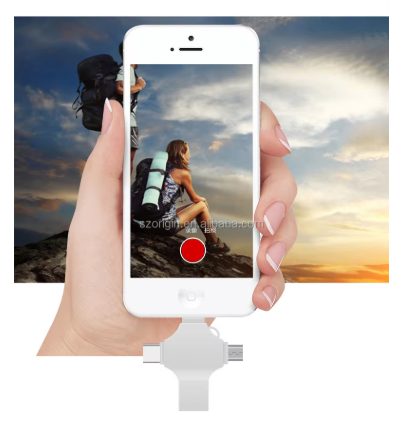 Simplifiez votre quotidien avec la clé USB 4-en-1 universelle, compatible avec iPhone, Android, tablette et ordinateur.